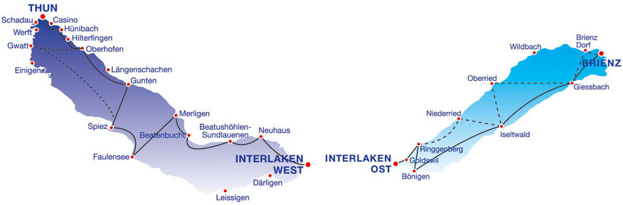 Today was our last full day and it was a scorcher. We had already decided that today was going to be based around Lake Thun and the boat that stops off at many different points around the lake. You can see all the stops the boat makes by using the map below.
