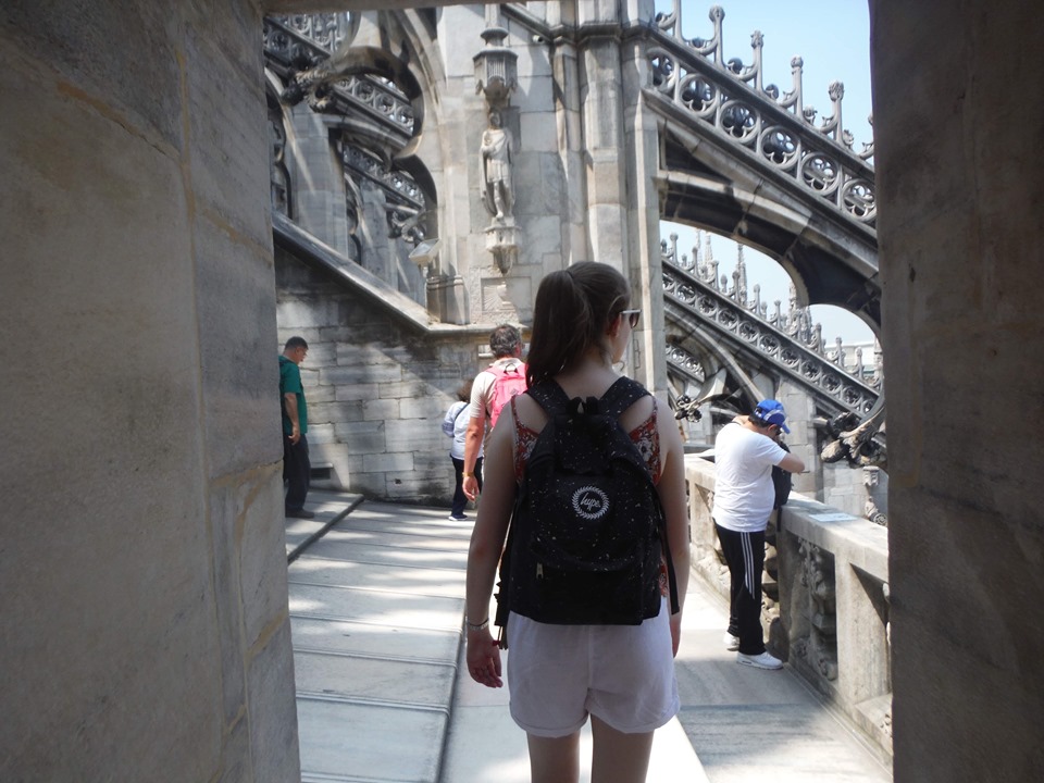 You may be wondering why we went back again… And the answer is because we wanted to see the view of the city from the roof! For 13 euros we had access to the roof of the Duomo via the ~295 stairs, inside and to the various exhibitions within. It was about 5 euros more expensive to go up in the lift which we weren’t willing to pay, but just so you know the option is there. The view from the very top of the roof was pretty spectacular, but I actually found it worthwhile to stop every now and again to take pictures from different perspectives. It felt slightly surreal to actually be standing on the sloped roof of such an important building, but I feel like this is a must do – if you only want to spend money on one attraction in Milan make it this.
